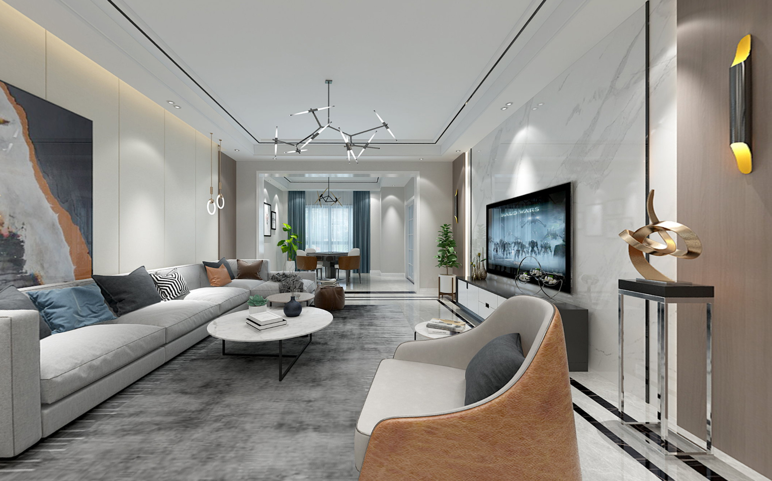現(xiàn)代風格的家具強調(diào)功能性,擁有強烈的色彩對比、簡單流暢的線條,前衛(wèi)又時尚。沙發(fā)選了橄欖綠,溫馨又舒適,原木風墻面和通鋪地...[ 了解詳情 ]